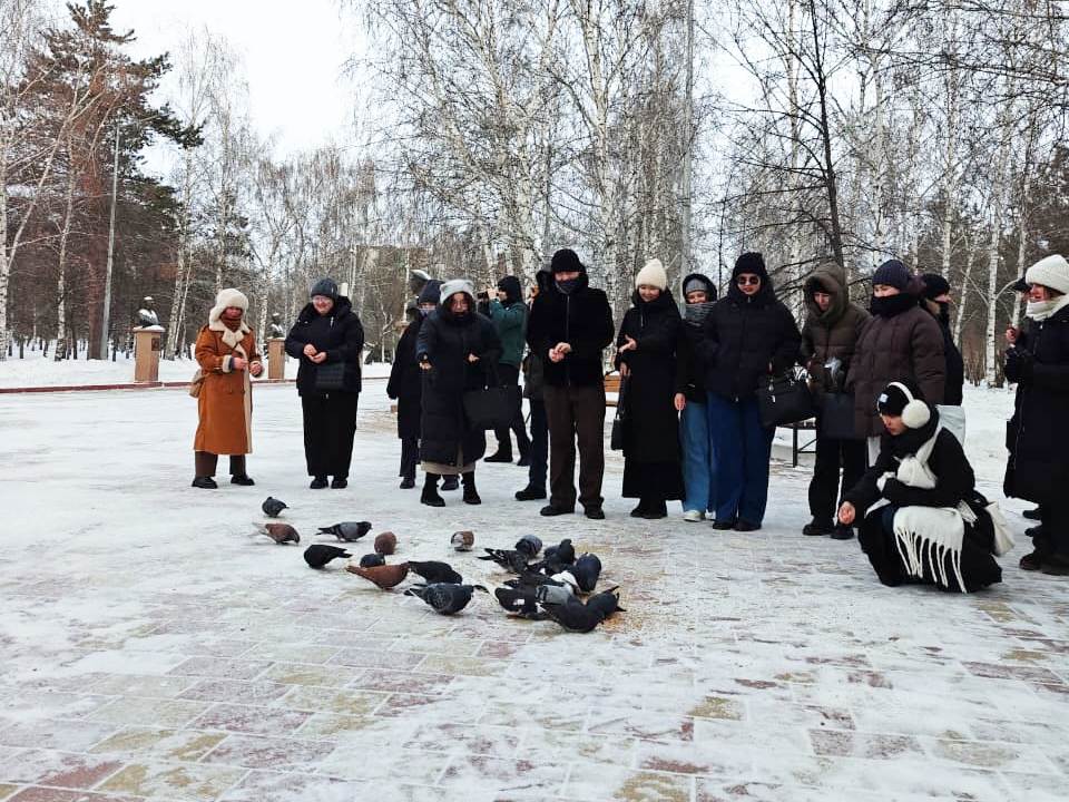 Under the guidance of Senior Lecturer Maria Ruleva, students visited Victory Park, where they cleared bird feeders of snow and replenished them with food.