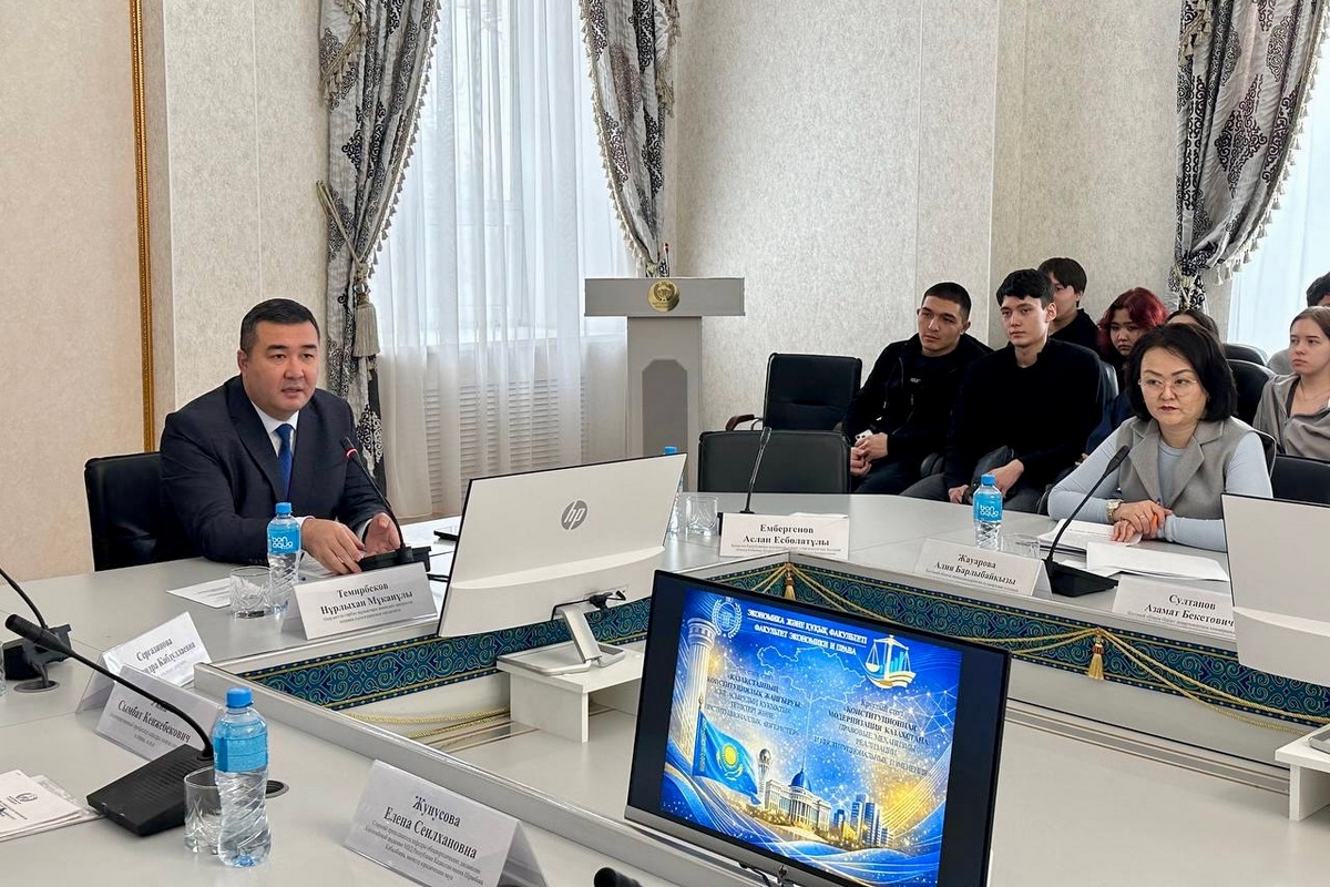 The event opened with welcoming remarks by Nurlykhan Temirbekov, Vice-Rector for Social and Educational Affairs at KRU. He emphasized that constitutional reform is not merely a legal process, but also a significant stage in societal development.