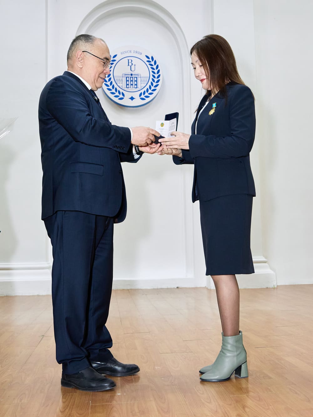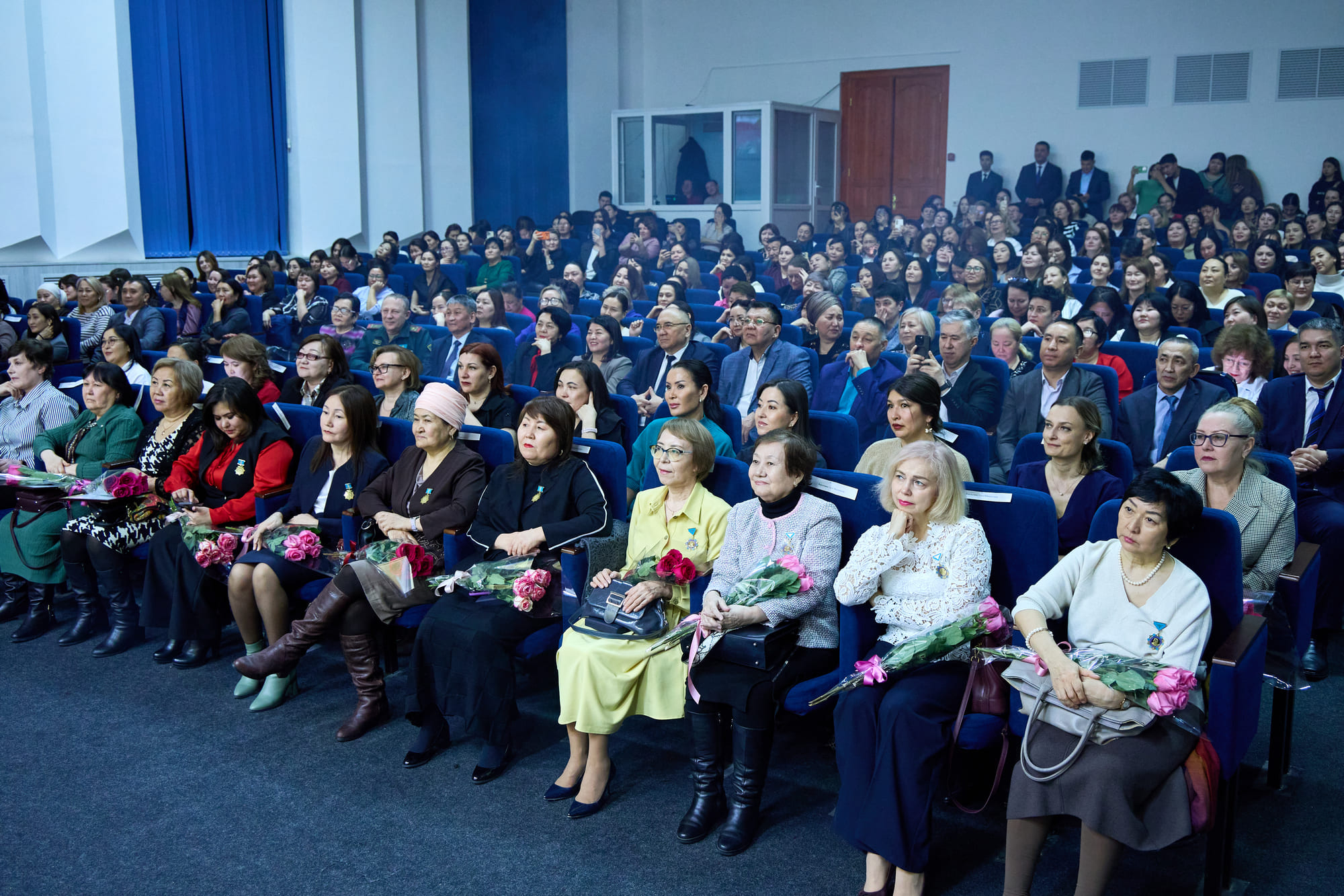 During the ceremony, the Rector also presented female staff members and lecturers with letters of appreciation from the Rector, certificates of honor, and commemorative badges awarded by the Ministry of Science and Higher Education of the Republic of Kazakhstan.
