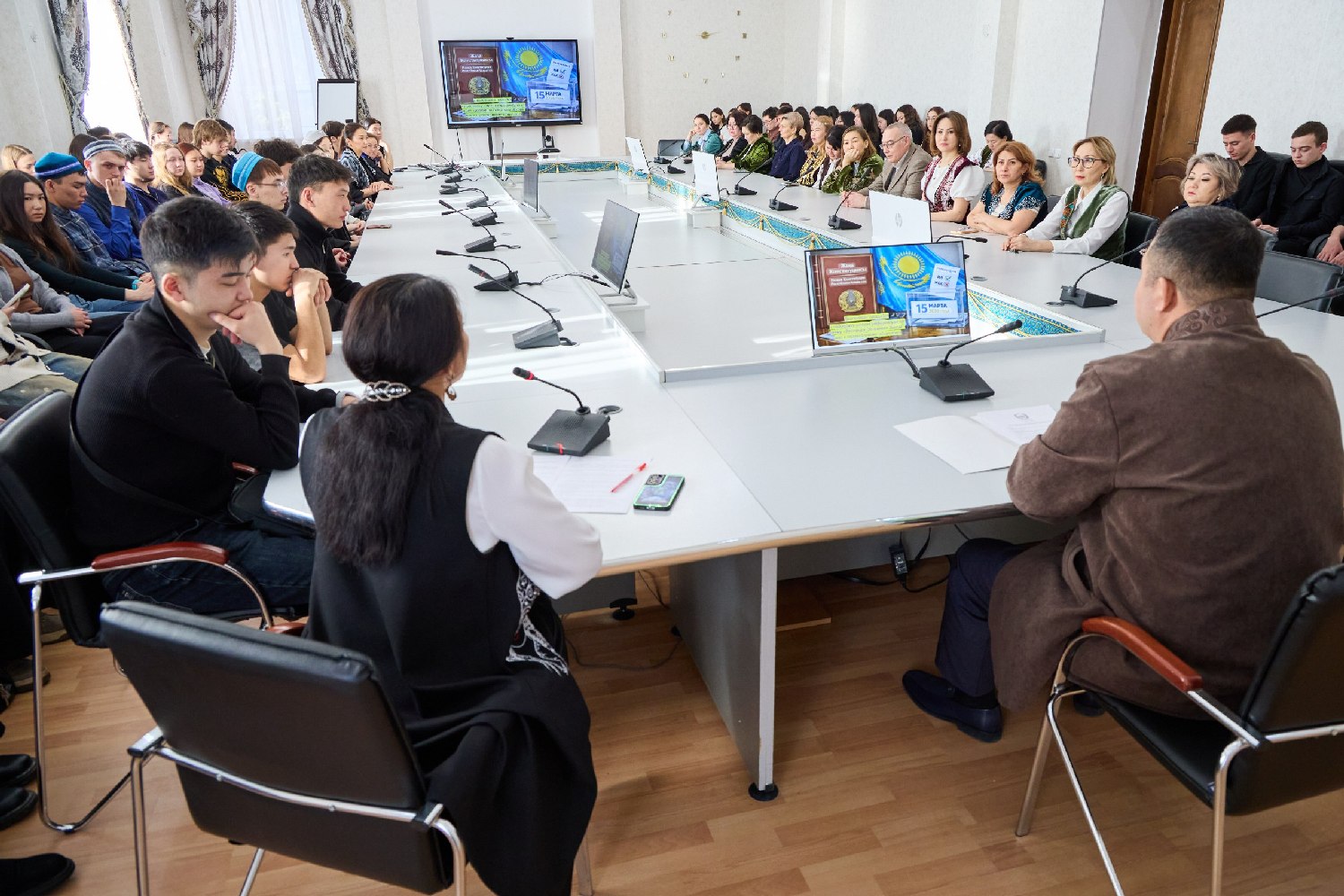 «Негізгі заңның эволюциясы: әділ қоғамға қадам» тақырыбындағы диалог алаңының спикері – ҚӨУ мемлекет және құқық теориясы кафедрасының аға оқытушысы Индира Талтанова. Талқылауға университеттің оқытушылары мен студенттері қатысып, елдің конституциялық дамуына қызығушылық танытты.