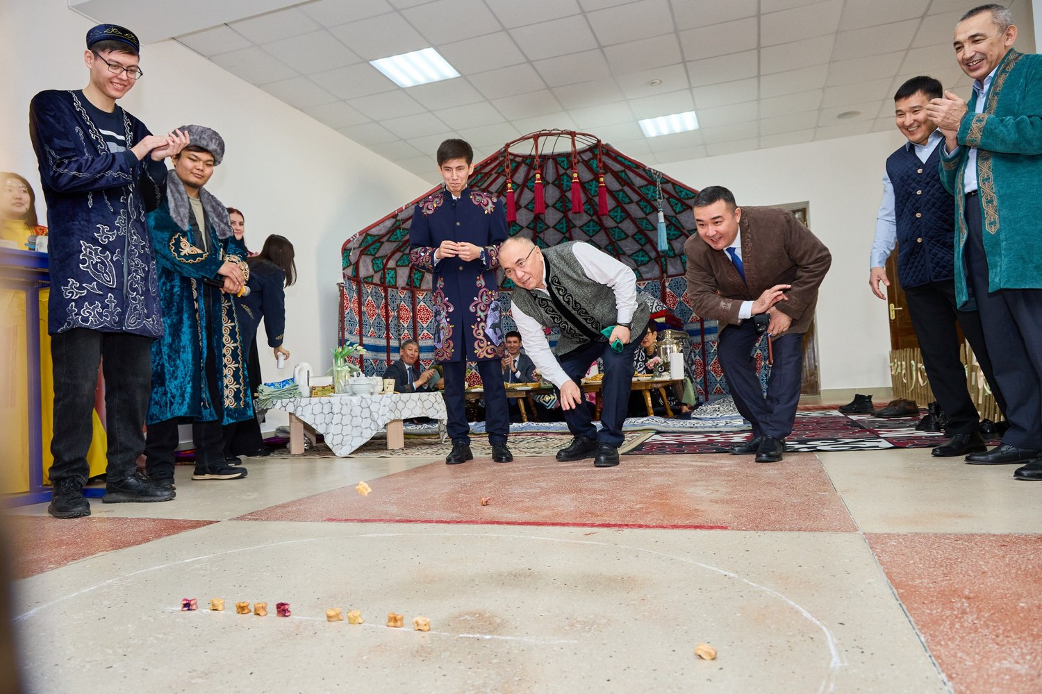Өзіміздің, яғни Қазақ алаңында мерекенің нағыз қызуы сезілді: киіз үй тігіліп, жайылған жомарт дастархан мен ұлттық ойындар думаны қызды. ҚӨУ ректоры Сейтбек Қуанышбаев асық ату сайысына белсене қатысса, студенттер мен ұстаздар қауымы дастархан басында мәре-сәре болып, дәстүрлі дәмнен ауыз тиді.